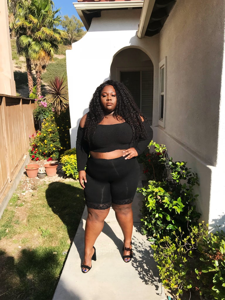 - Models in photo order wearing sizes M, 3X
